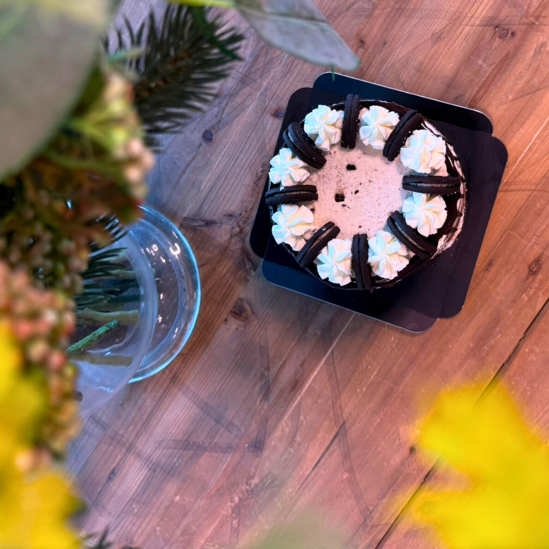 Una tarta irresistible para los verdaderos fans de las galletas oreo. Con cuatro pisos de altura, combina bizcocho esponjoso y relleno cremoso, coronada con oreos en la parte superior, un espectacular chorreo de chocolate negro y toques de nata montada que la hacen aún más especial.
