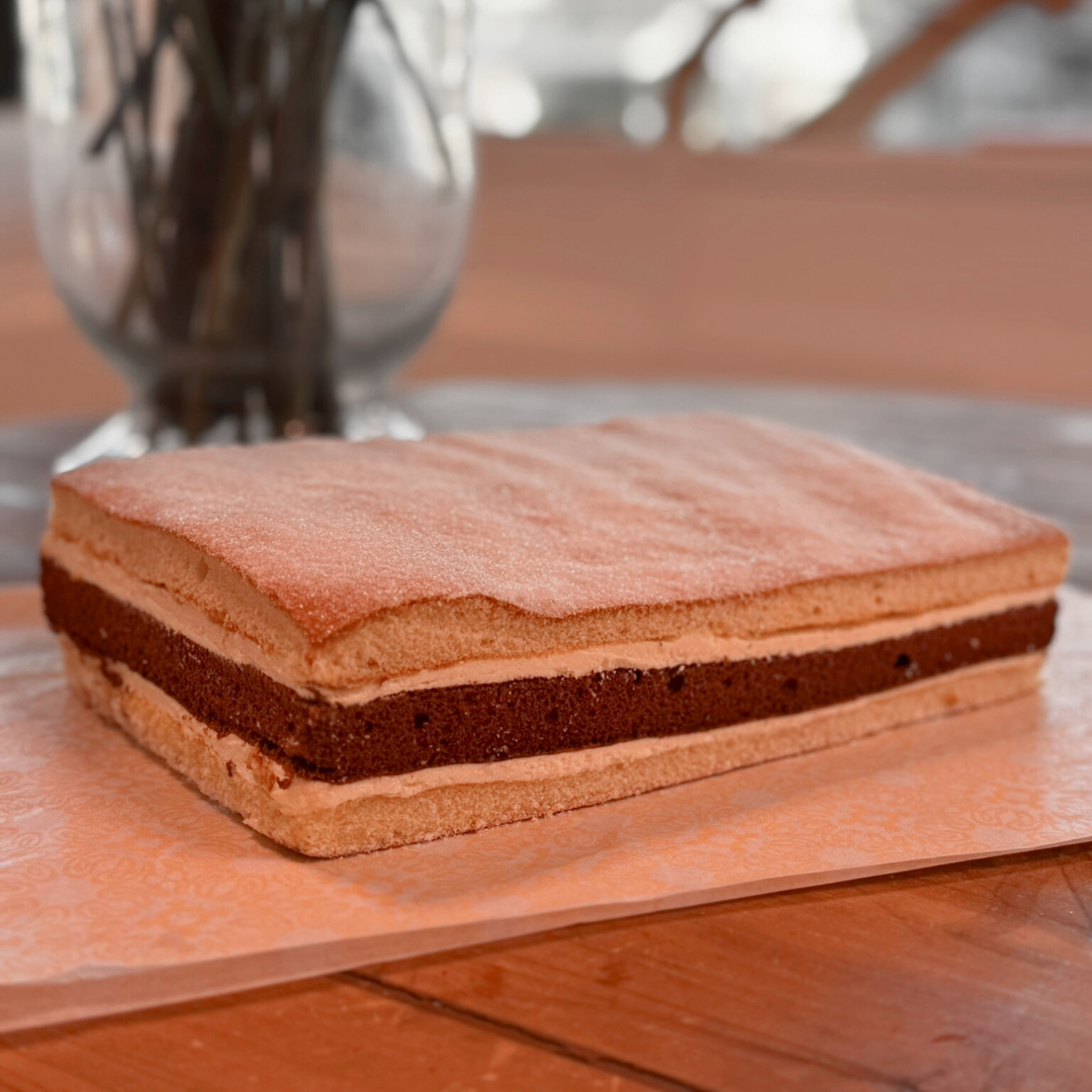 Disfruta de la deliciosa Tarta Fontisi, elaborada con capas esponjosas de bizcocho de chocolate intercaladas con margarina vegetal, y coronada con una fina capa de azúcar que la hace irresistible. Perfecta para cualquier celebración o para un capricho dulce en cualquier momento.